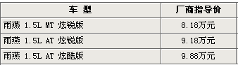 2008年6月10日,廣州豐田正式公布了全球戰(zhàn)略車型雅力士車型的廠家指導(dǎo)價(jià),從9.19萬元到13.63萬元不等。與其它汽車廠商不同的是,雅力士公布的廠商指導(dǎo)價(jià)包含了其自身的車輛購置稅。據(jù)廣州豐田4S店銷售人員透露,目前雅力士的實(shí)際售價(jià)為8.5萬-12.6萬,該價(jià)格就是雅力士的開票價(jià)。