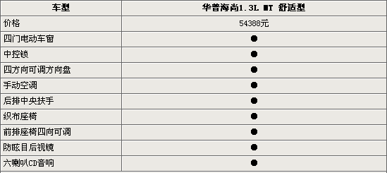 華普海尚(參數(shù)圖庫)這款車目前在市場上已經(jīng)銷售了三年,共有1.5升和1.8升兩個排量。但對于海尚這款車型來講,其主要市場將鎖定國內(nèi)二、三級城市,所以1.8升車型目前已經(jīng)停產(chǎn)。那么小排量、低使用成本的海尚1.3升車型將更能獲得消費者的認可。近日,網(wǎng)上車市網(wǎng)站在有關方面了解到,華普海尚1.3L舒適型現(xiàn)已經(jīng)上市,售價54388元。接下來我們可以先看看海尚1.3L的詳細參數(shù)和配置,希望能給消費者帶來一些幫助。