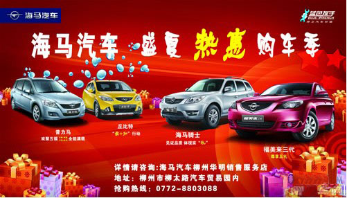 省油才是正道。 近日,從海馬柳州華明店獲悉,為回饋一直支持海馬柳州華明的新老客戶,繼“五一歡樂送”及“感恩雙親”后又隆重推出“海馬汽車•盛夏熱惠購車季”活動。