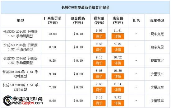 為回饋新老客戶的厚愛,現(xiàn)進店購車真情大回饋。廣西長道再掀周末購車優(yōu)惠狂潮,長城C50現(xiàn)金*高優(yōu)惠5000元,C50升級版現(xiàn)金優(yōu)惠1000元,送1000元愛車禮包。長城C50定位"全尺寸 T家轎",以獨有的渦輪增壓技術(shù)和超越同級車型的配置成為自主品牌的標桿車型,在市場亮相便吸引了眾多消費者的目光。詳情咨詢:0771-2330301。
