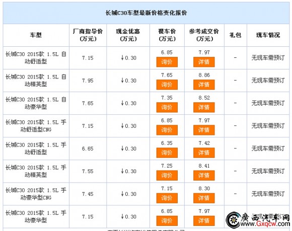 “雙十一”狂歡節(jié)火爆來襲,廣西長道長城汽車優(yōu)惠永不落后。從即日起至11月11日。2015款長城C30新車上市,現(xiàn)金直降3000元,無現(xiàn)車需預訂。購車即送狂歡節(jié)大禮包。將實實在在的優(yōu)惠帶給消費者。歡迎感興趣的朋友進店咨詢購買。廣西長道服務熱線:安吉大道(往武鳴方向)高速路口長城4S店(0771-2330301);白沙大道亭江立交旁(金灣花城斜對面)長城4S旗艦店:(0771-5780390)。我們將竭誠為您服務 !