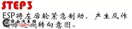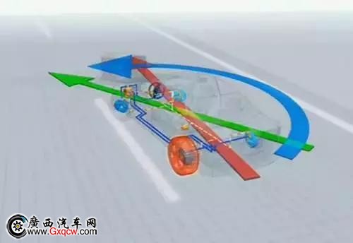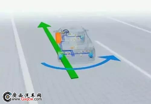 在這樣的情況下,ESP會將坐前輪制動,減少扭矩,汽車就可以正常行駛在左車道上。